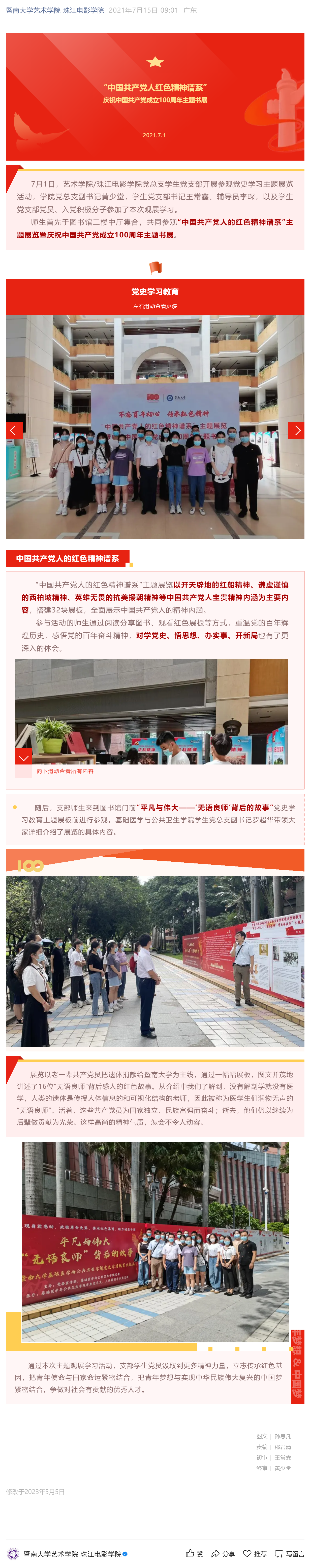党史学习教育⑭|学习精神谱系,传承红色基因——我院学生党支部参观学校“庆祝建党100周年”主题展览