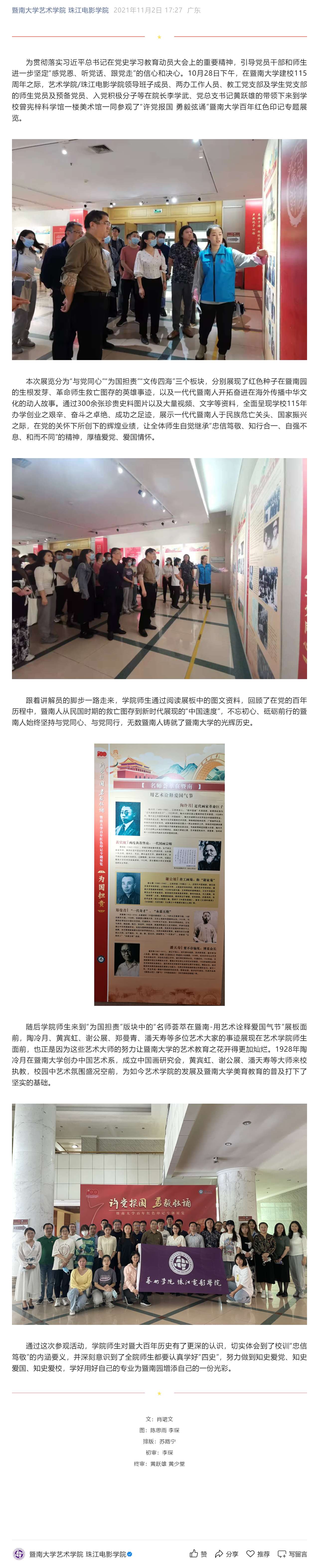 党史学习教育⑳ | 我院师生参观“许党报国 勇毅弦诵”暨南大学百年红色印记专题展览
